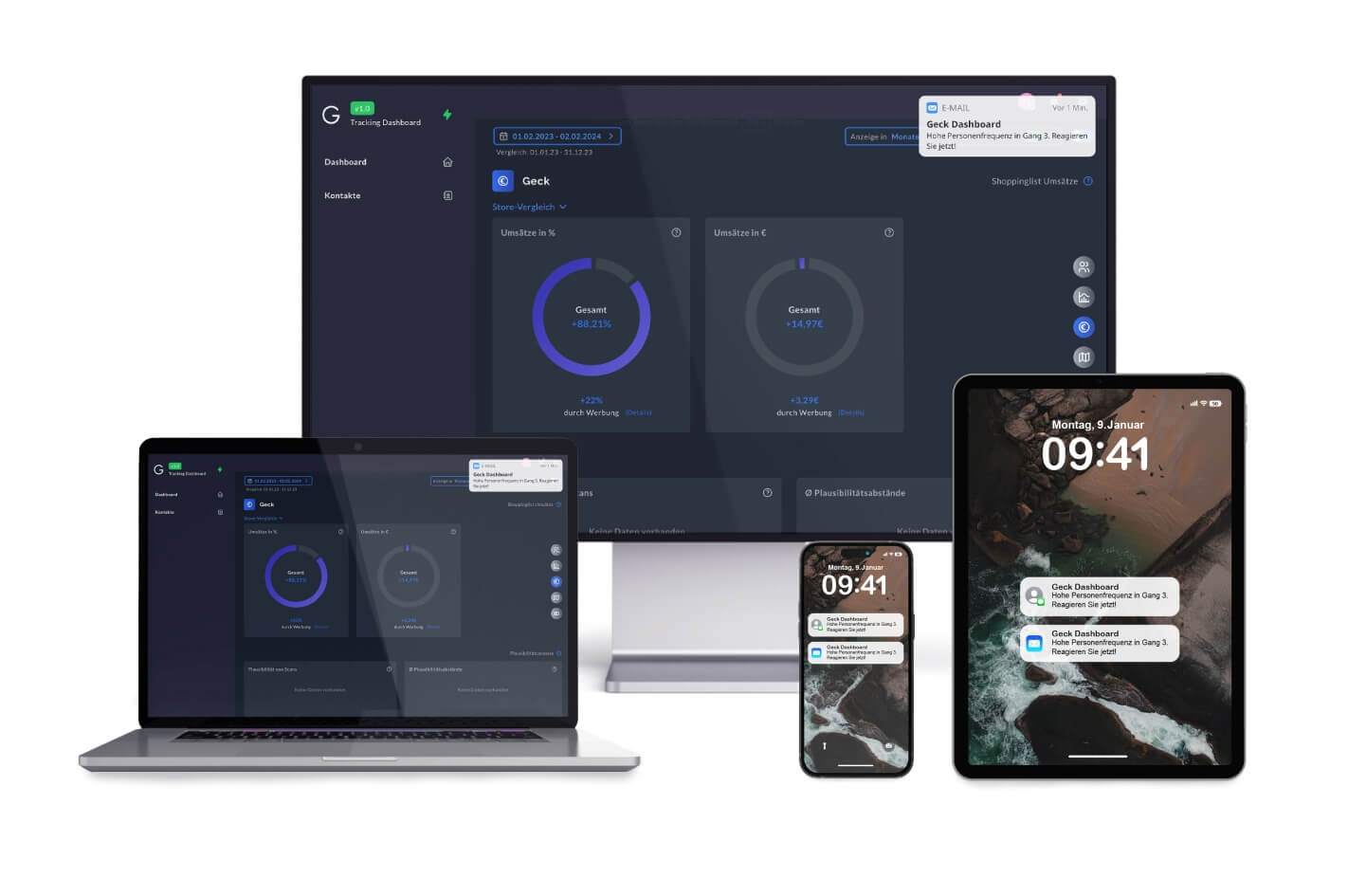 Erhalten Sie Updates auf Ihrem Smartphone, Dashboard oder per E-Mail – individuell angepasst an Ihre Bedürfnisse und Verantwortungsbereiche.